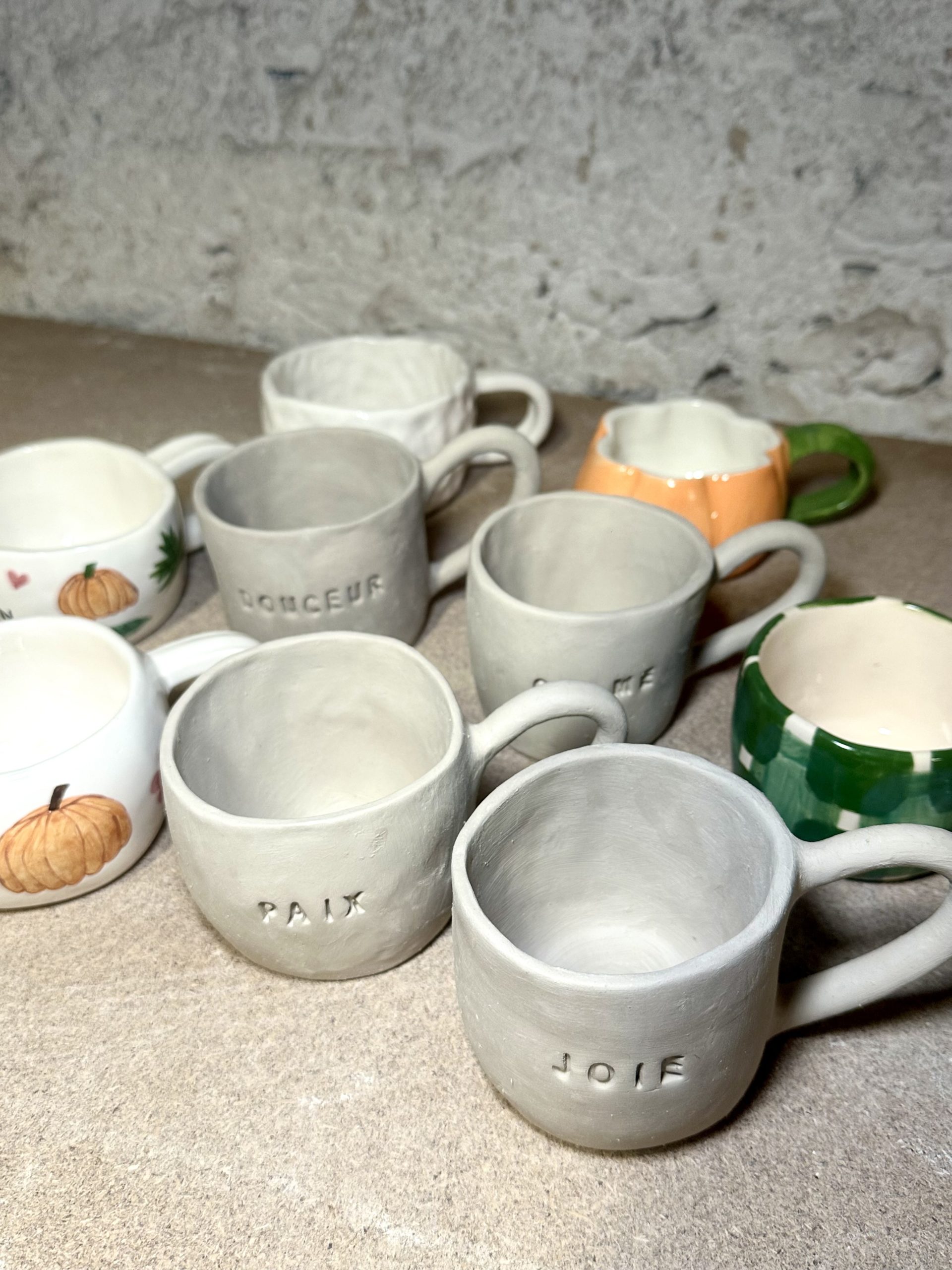 Deux séances pour créer ensemble, modeler sa tasse à la main puis la décorer à son image.