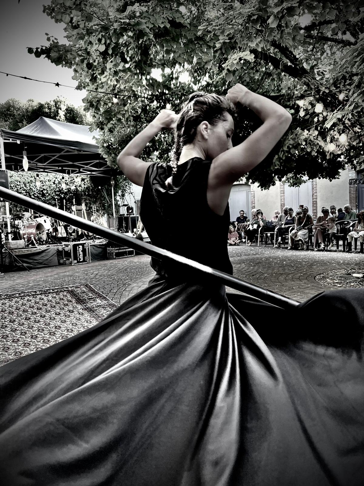 Portée vers la recherche d’un sens de la communion et de la célébration, Sacha Steurer rencontre la danse du tournoiement. Danse de l’être la plus épurée qui soit, avec ses dimensions de louange, de transe, d’art philosophique et poétique, elle l’intègre depuis lors, avec évidence, dans ses créations.