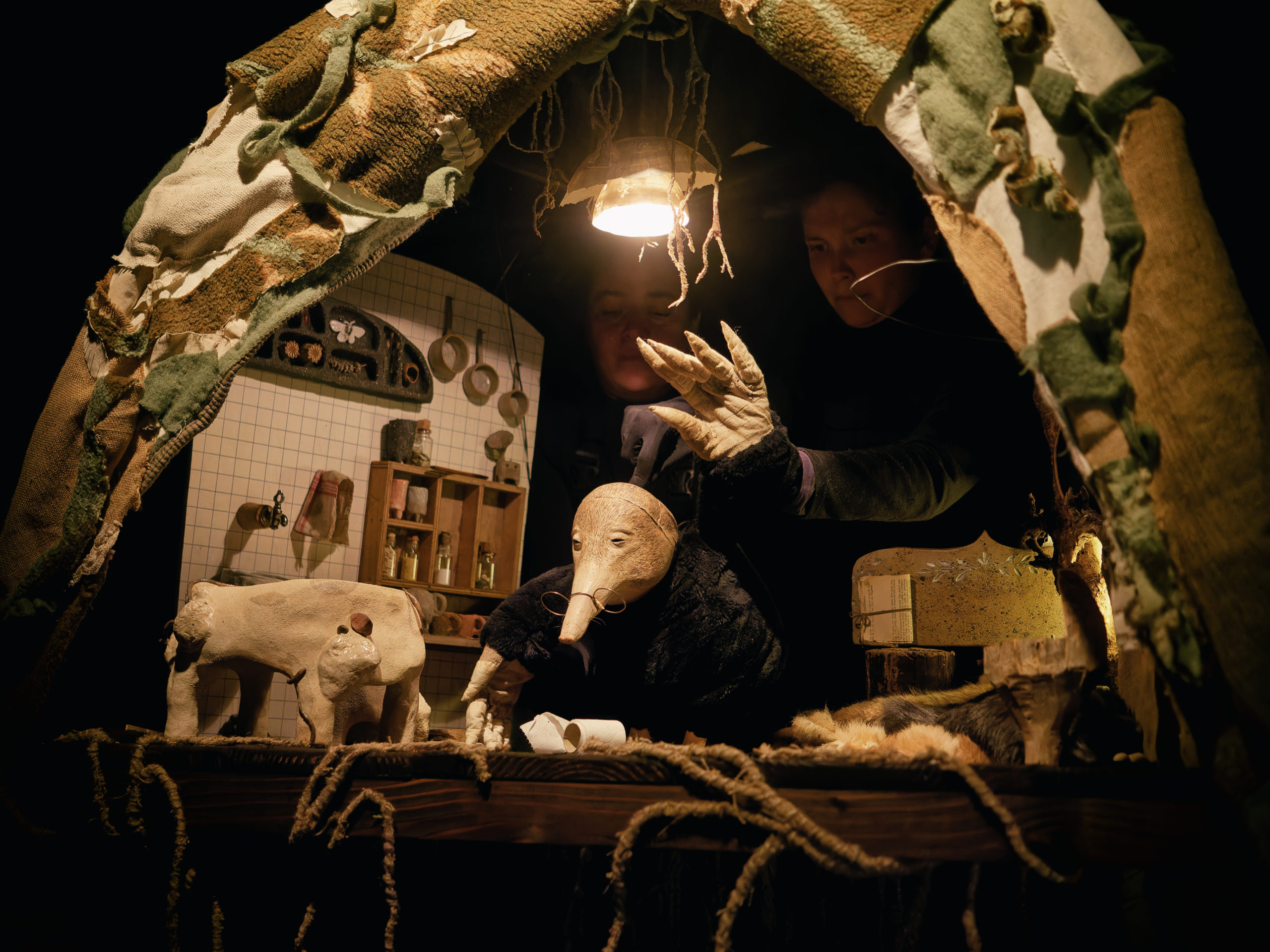 Deux marionnettes portées cohabitent avec malice dans une tanière sombre et apprennent petit à petit à construire un lien souterrain. Tendresse et humour «Tatiesque» s’immiscent entre les strates de la terre.