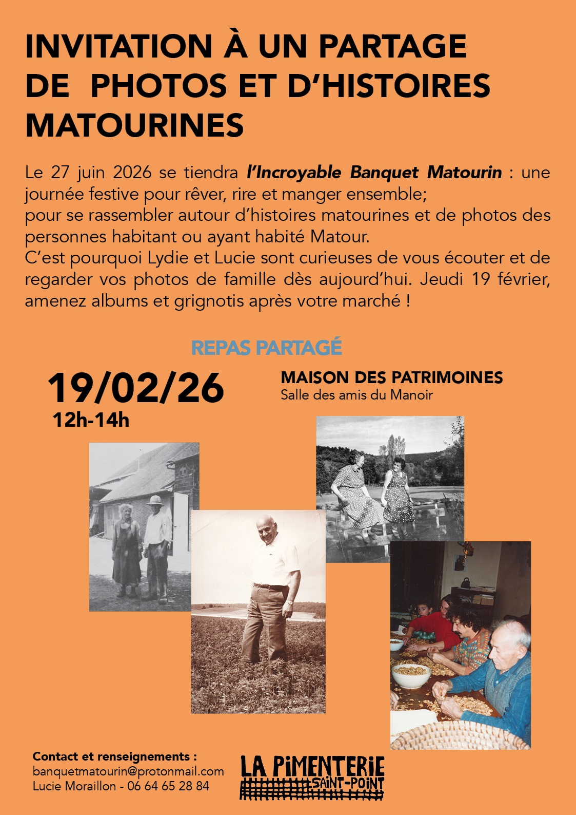 Lydie Del Rabal (crieuse publique) et Lucie Moraillon (photographe) vous attendent sur à Matour jeudi 19 février pour collecter vos photos et histoires matourines d’hier et aujourd’hui.