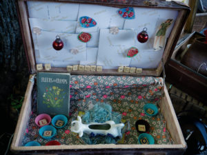 Badges, dessins, carnets… Angèle a plein d’objets dans sa valise pour s’inspirer et créer !